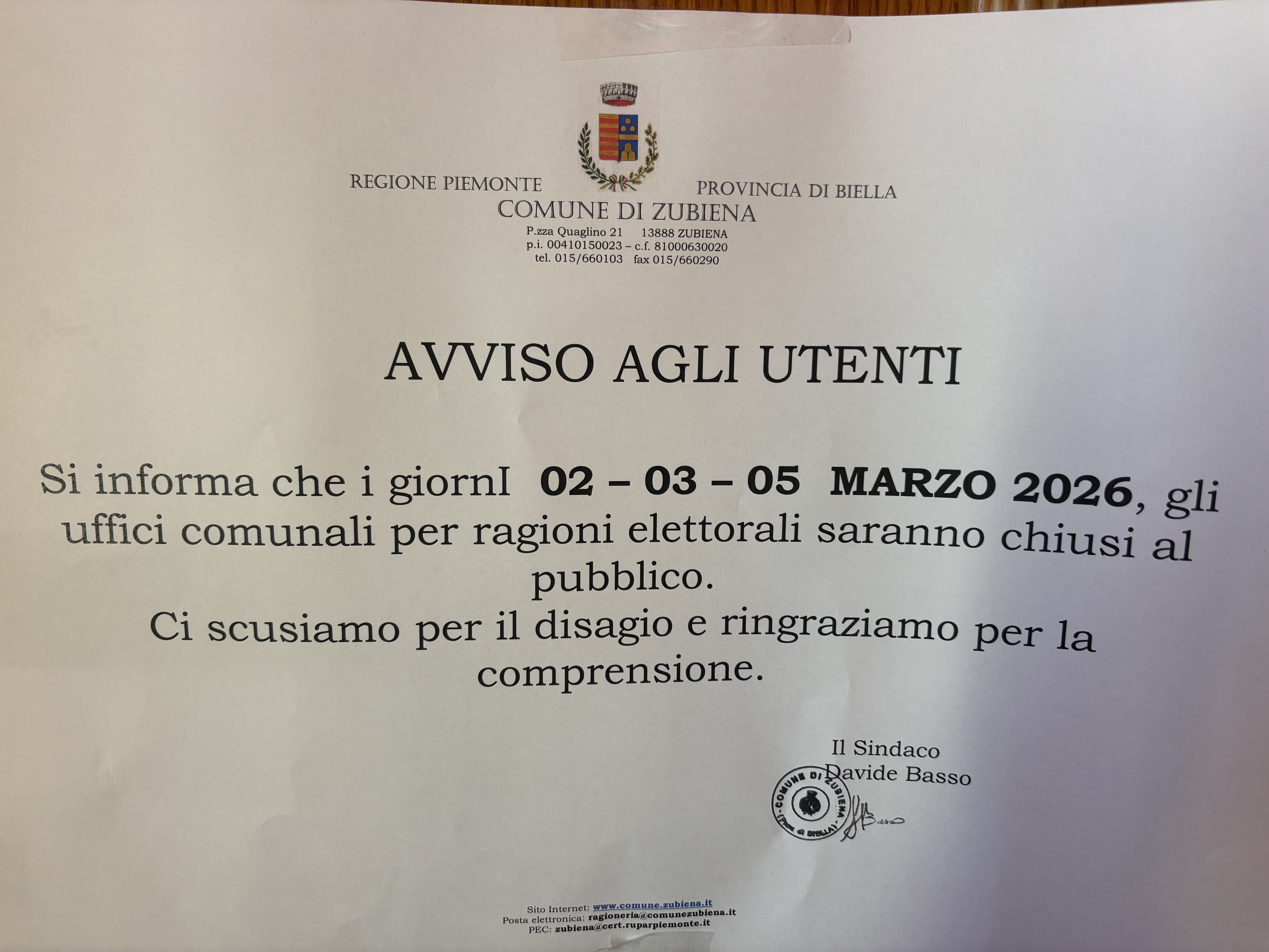 Chiusura Uffici 02 - 03 - 05 Marzo